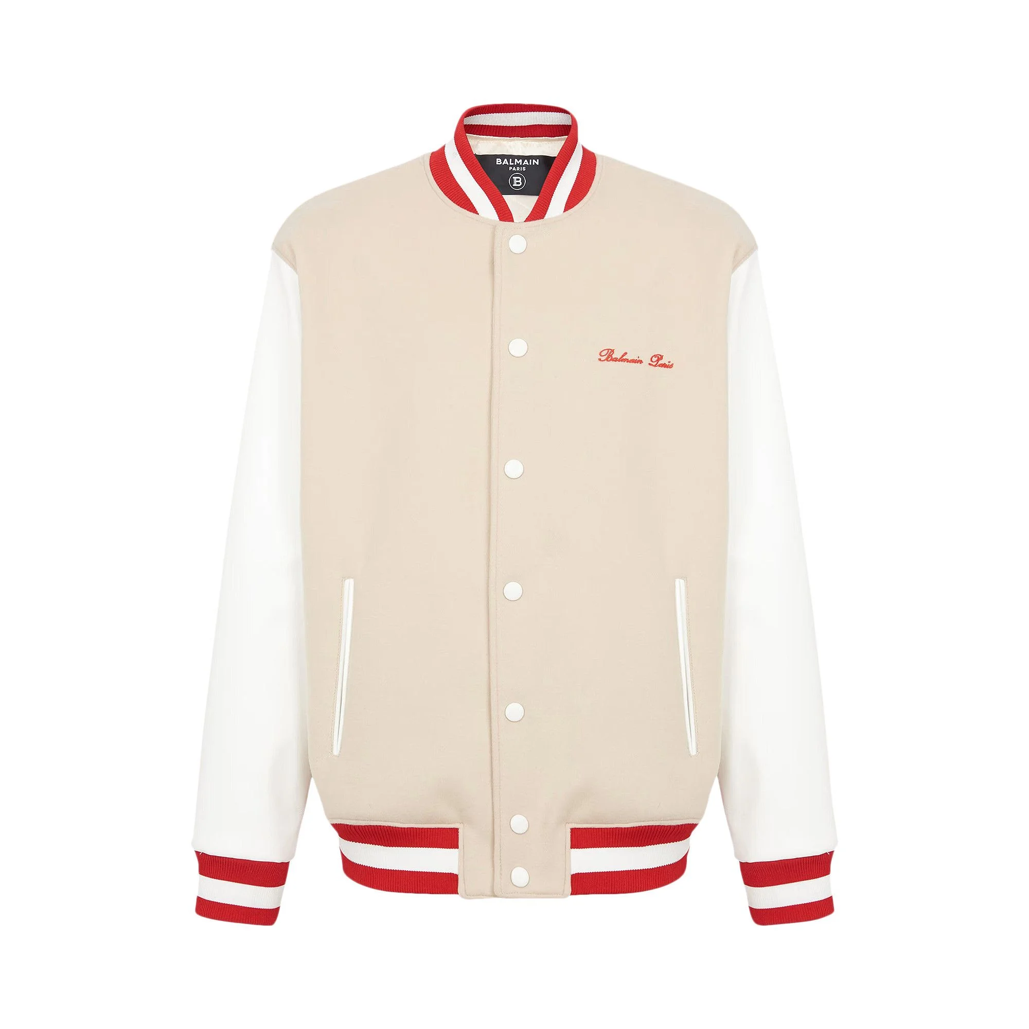 Balmain Bicolor Signature Varsity Jacket 'Ivory/Off White/Red'
