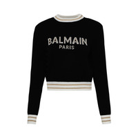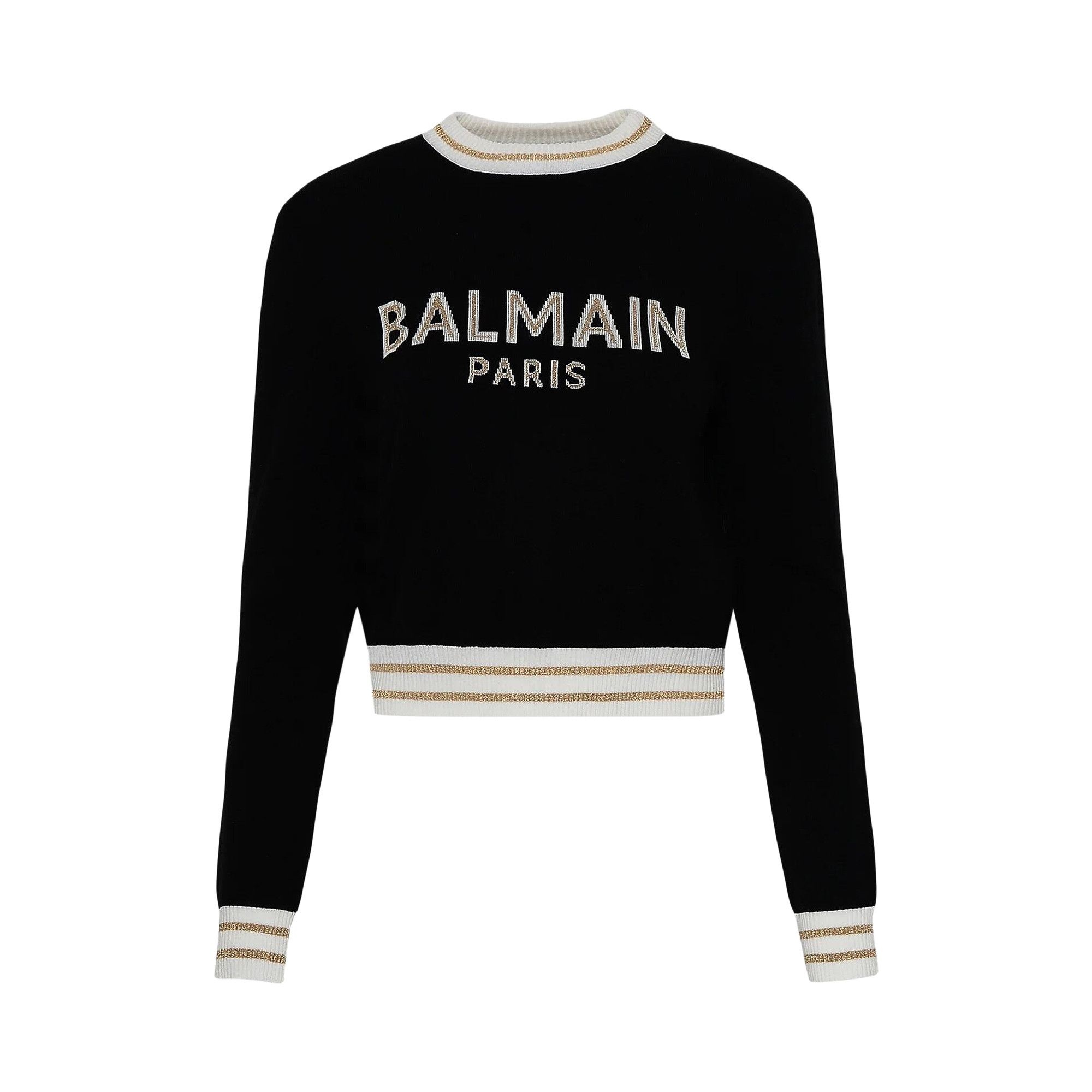 Balmain Logo Intarsia Knitted Cropped Jumper 'Black/Natural/Gold'