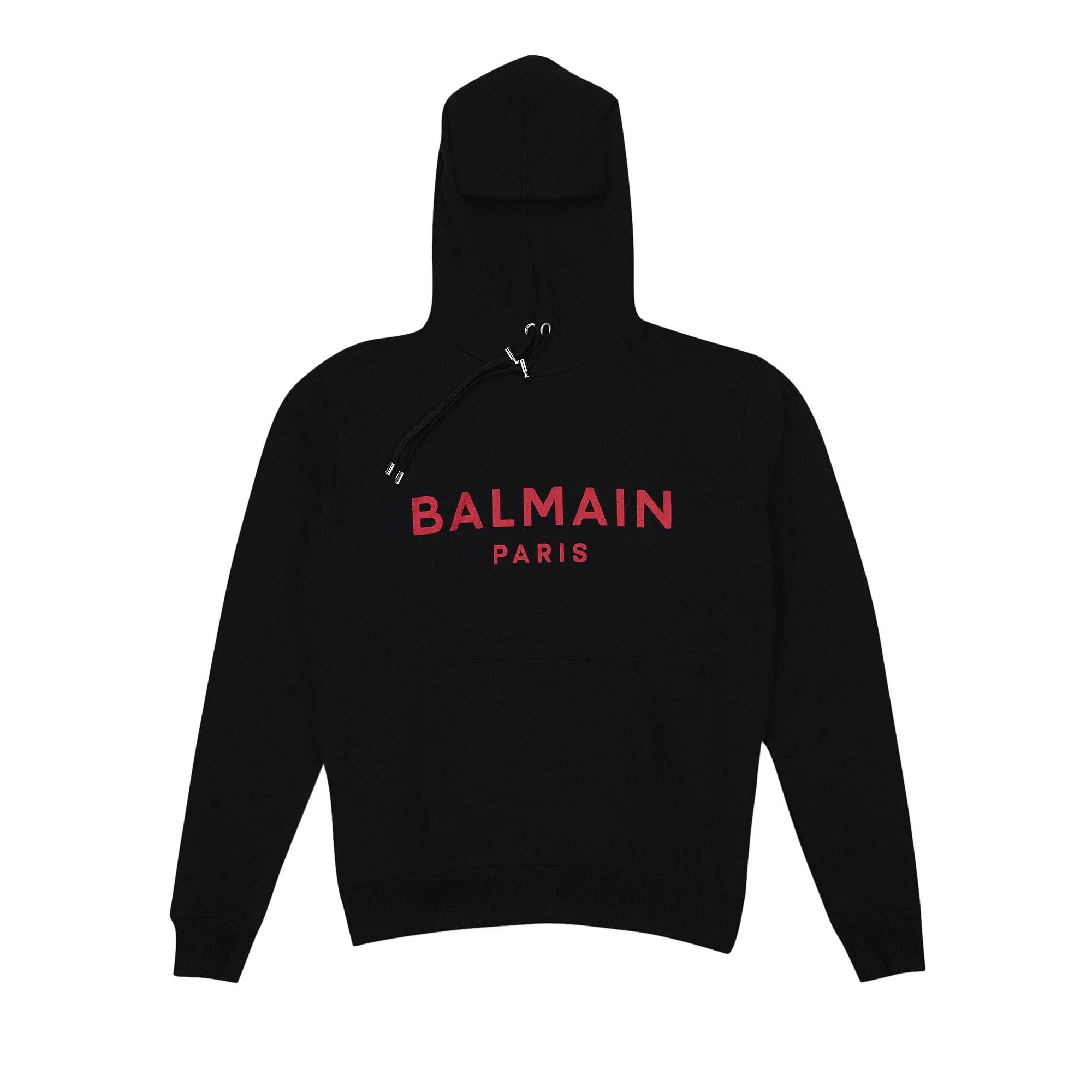 Balmain Logo Printed Drawstring Hoodie 'Black/Red'