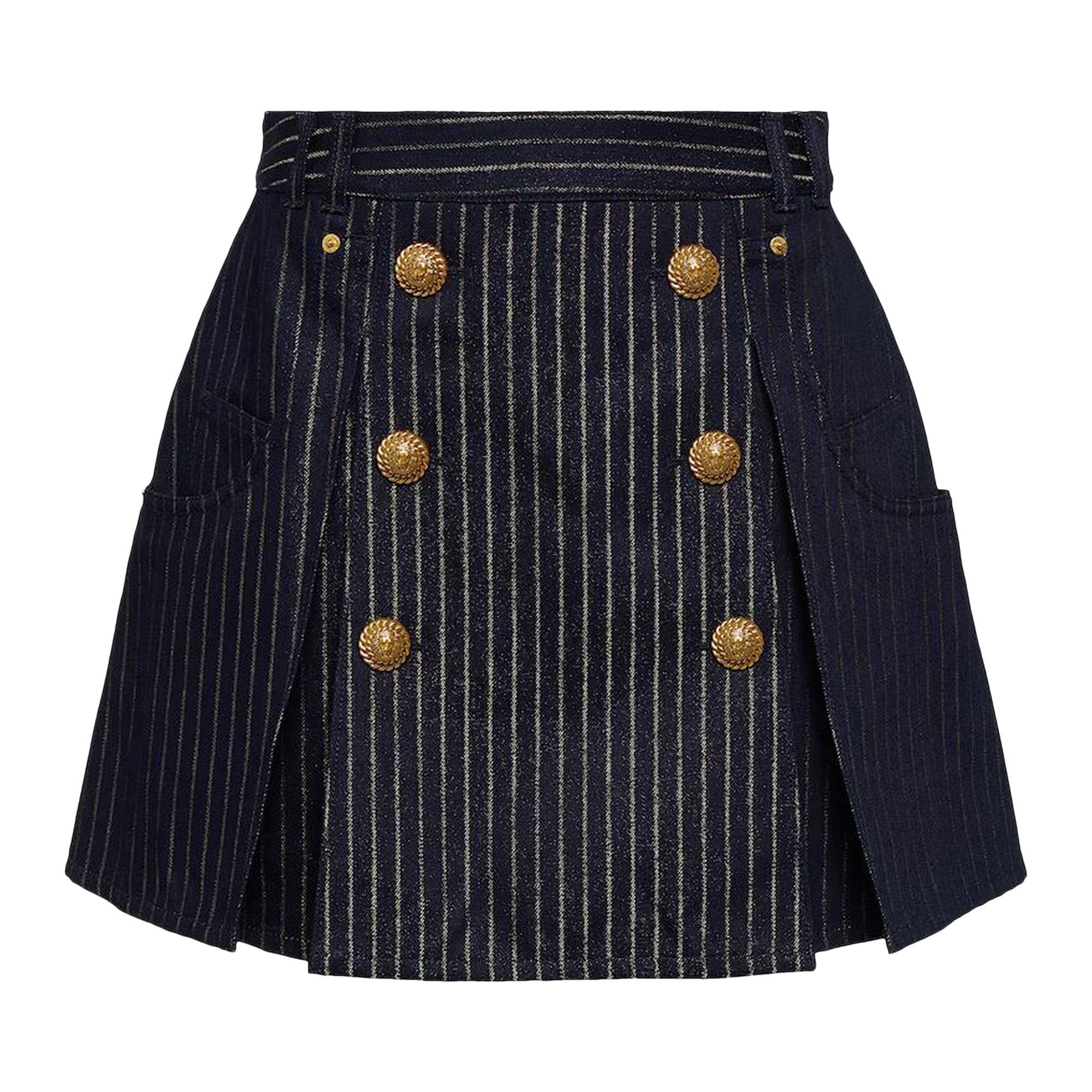 Balmain Pinstripe Button Detailed Skirt 'Blue'