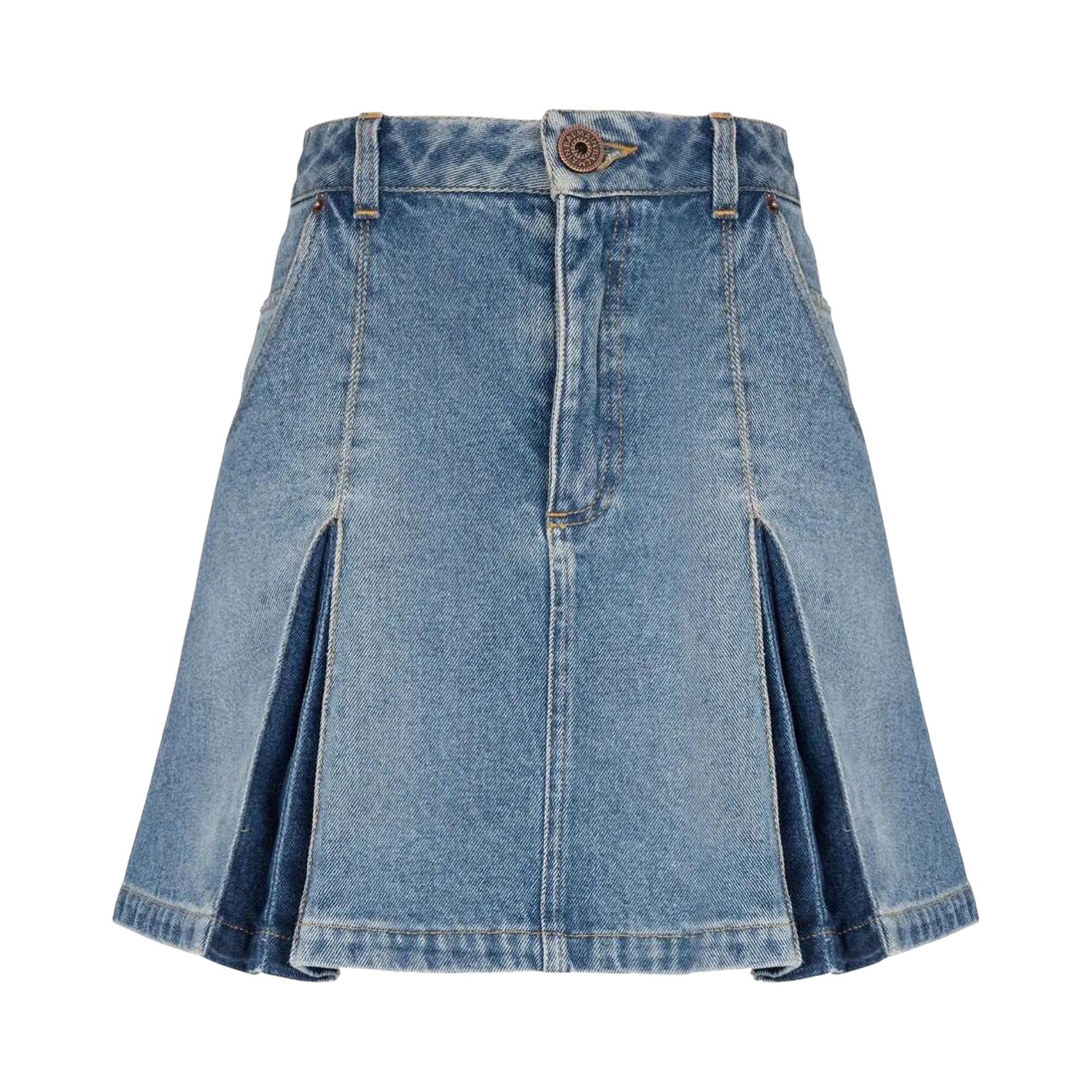 Balmain Pleated Denim Skirt 'Blue'