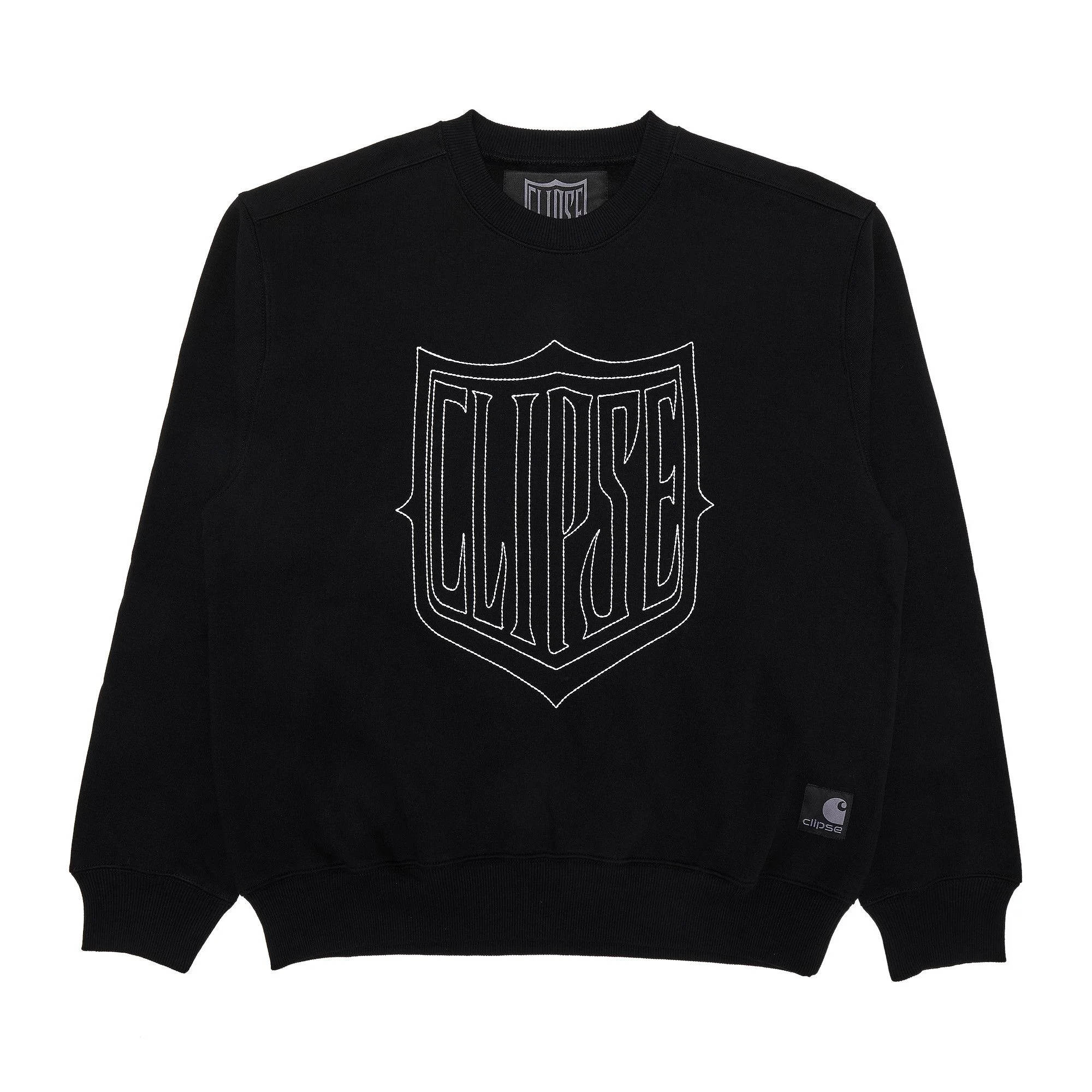 Clipse is the prolific hip-hop duo comprised of Pusha T and Malice. In honor of the group's world tour, the pair created merch in collaboration with Carhartt WIP. Clipse's shield logo is embroidered in white on the front of the sweatshirt, while a large Carhartt WIP "C" logo adorns the back.