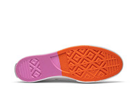 Released in June 2019, the Converse Chinatown Market x Chuck 70 Ox 'UV' low top takes the iconic sneaker into the future with a color-changing design from LA brand Chinatown Market. The panels on the upper are stark white and turn bright purple, orange and pink when exposed to UV light. The multi-colored scheme continues on the rubber outsole, allowing the white laces and foxing tape to stand out.
