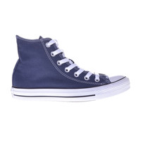 The legendary Converse Chuck Taylor All Star Hi Top sneaker is as at-home on the street today as it was on the basketball court when introduced in 1922. The navy-blue canvas upper works perfectly with signature elements found on Chucks, including the high top All Star ankle patch, white rubber toecap and laces, and oxford silhouettes. This shoe, in this colorway, has been proven to be versatile, which makes it solid addition to any collection.