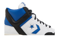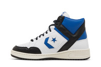 The Fragment Design x Converse Weapon High ‘Sport Royal’ presents Hiroshi Fujiwara’s take on the vintage hoops shoe. Finished in Fragment’s signature color scheme, the high-top makes use of a smooth leather upper, featuring a crisp white base with contrasting black overlays and a padded collar in a royal blue finish. The latter hue is repeated on the shoe’s branding elements, including a Star Chevron logo on the quarter panel and a woven Converse Weapon tag atop the tongue. Fragment’s lightning bolt insignia is debossed on the lateral heel. The high-top rides on durable cupsole tooling, featuring aged off-white sidewalls and a black rubber outsole. UPPER MATERIAL Leather