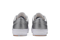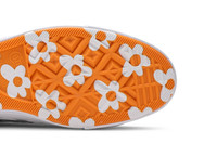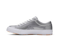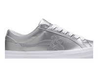 The Golf Le Fleur x One Star OX ‘3M’ finds Tyler, the Creator updating his collaborative silhouette with a finish guaranteed to light up flash photography. The low-top’s metallic silver leather upper is entirely treated with reflective 3M, including the flower logo that adorns the quarter panel. Underfoot, a bright orange rubber outsole is coated in all-over floral print.