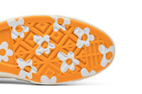 Tyler, the Creator’s Golf le Fleur brand collaborated with Converse for this January 2018 One Star Suede which dropped in a January 2018 three-shoe ‘Pastel Pack’ with ‘Geranium Pink’ and ‘Bachelor Blue’ colorways. The low-top features a ‘Jade Lime’ premium suede upper with a tonal floral One Star logo on the side panels, and flat cotton laces. The upper also includes white contrast stitching, a padded collar, a reinforced toe cap, and debossed co-branded tongues. Under foot, a cream vulcanized midsole combines with an orange rubber outsole accented with white flowers.