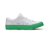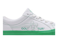 Tyler the Creator joined forces with Converse to unveil the Golf Le Fleur x One Star Ox sneaker in August 2019. Part of the 'Colorblock' pack, the 'Kelly Green' rendition dons a white leather upper with contrasting green stitching and a matching green midsole, updating the classic One Star look. A flower pattern at the midfoot and on the tongue contributes flair to the design while a matching motif hits the rubber outsole to complement the floral vibe.