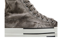 Launching as part of the 'Washed Canvas Pack,' the Rick Owens x Converse DRKSHDW DBL DRKSTAR Chuck 70 High 'Concrete' reconvenes the partner brands on a distorted edition of the classic silhouette. Distressed grey canvas is utilized on the upper, featuring an elongated tongue with a co-branded woven tag. A circular All Star patch adorns the medial ankle. The high-top is mounted on a double-stacked platform rubber midsole, marked with a custom molded DRKSHDW license plate on the left heel. UPPER MATERIAL Canvas
