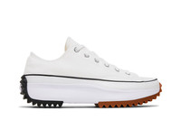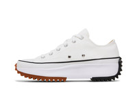 The Converse Run Star Hike Low ‘White’ delivers a fashionable twist on the classic Chuck Taylor All Star. The organic cotton canvas upper is mostly unchanged from the original, complete with chrome eyelets, a rubber toe cap and black pinstripe detailing. The sneaker’s tooling is reworked with a platform midsole and a decoupled sawtooth outsole, featuring black rubber that extends over the heel and gum rubber that wraps up the toe. UPPER MATERIAL Cavnas