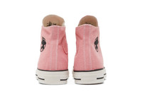The Stussy x Converse Chuck 70 High ‘Surfman’ celebrates the heritage silhouette’s outsized influence in the history of Southern California style. A vivid shade of pink is executed on the canvas hemp upper, accented with Stussy’s ‘Surfman’ graphic on the lateral ankle. The traditional Chuck Taylor patch is relegated to the interior ankle, while a woven All Star tag decorates the tongue. The high-top sits on a white rubber midsole, featuring unvarnished sidewalls with black pinstripe detailing. UPPER MATERIAL Hemp