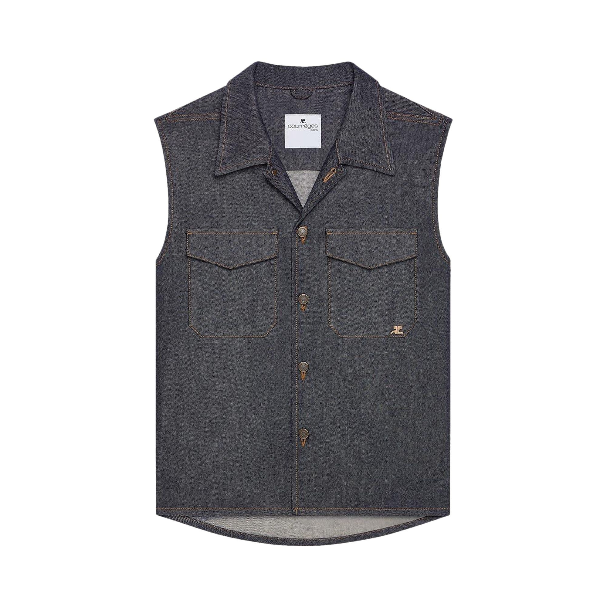Courrèges Utility Denim Sleeveless Shirt 'Dark Heather Grey'