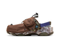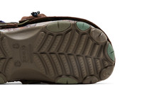 The Bodega x Crocs All-Terrain Clog 2.0 NICT-TECH 'Off the Beaten Path' showcases a lightweight foam build covered in a woodland bark camo print. A removable brown ripstop sheath, secured with toggle closure and equipped with a zippered pouch, wraps around the vamp for protection against the elements. An adjustable turbo heel strap provides a snug and secure fit. Underfoot, a lugged outsole offers durable traction on uneven terrain. UPPER MATERIAL Ripstop