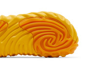 The Salehe Bembury x Crocs Pollex Clog ‘Yolk’ showcases a tonal yellow finish on the molded foam upper, featuring a fingerprint-inspired design formed by swirling concave ridges. The slip-on is equipped with an adjustable heel strap for a secure fit, while ventilation ports throughout the forefoot and heel offer enhanced breathability. Bembury’s signature fingerprint design is repeated on the outsole, reinforced with rubber pods for durable traction. UPPER MATERIAL Croslite