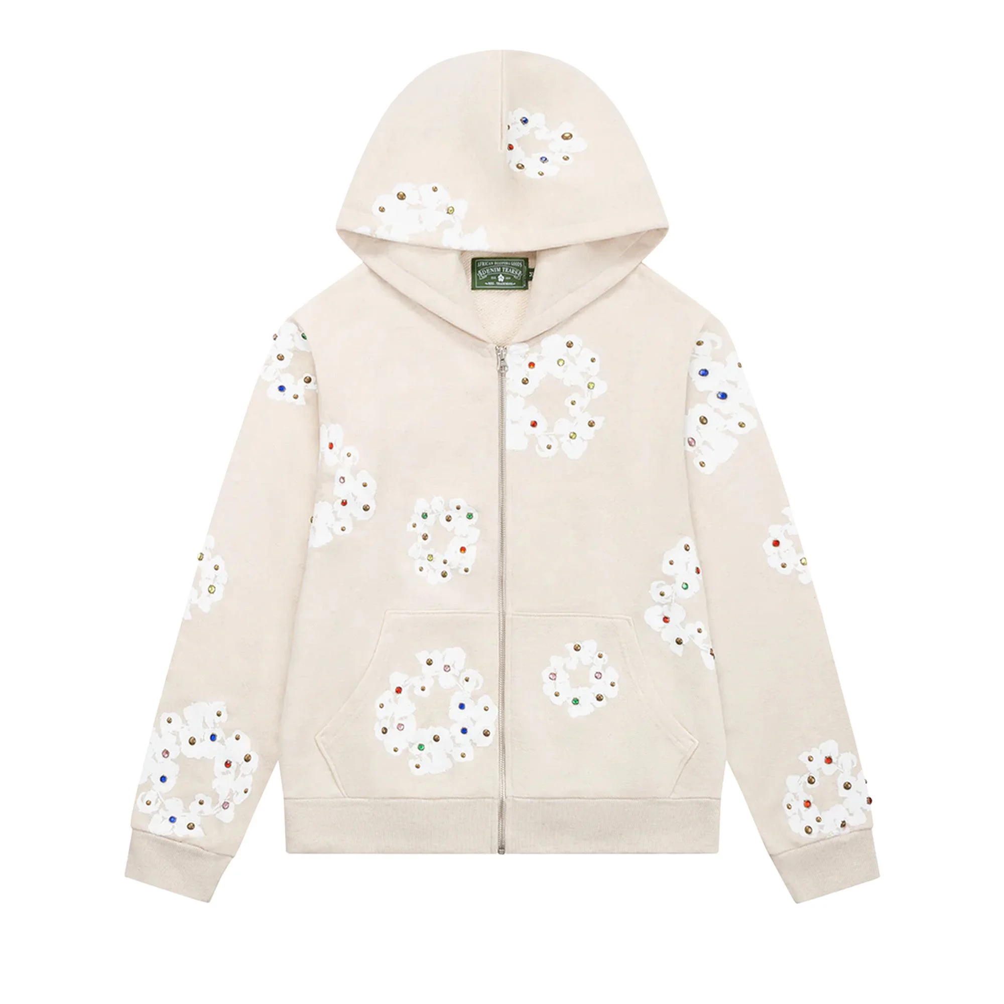 Denim Tears Rhinestone Wreath Zip Hoodie 'Oatmeal'