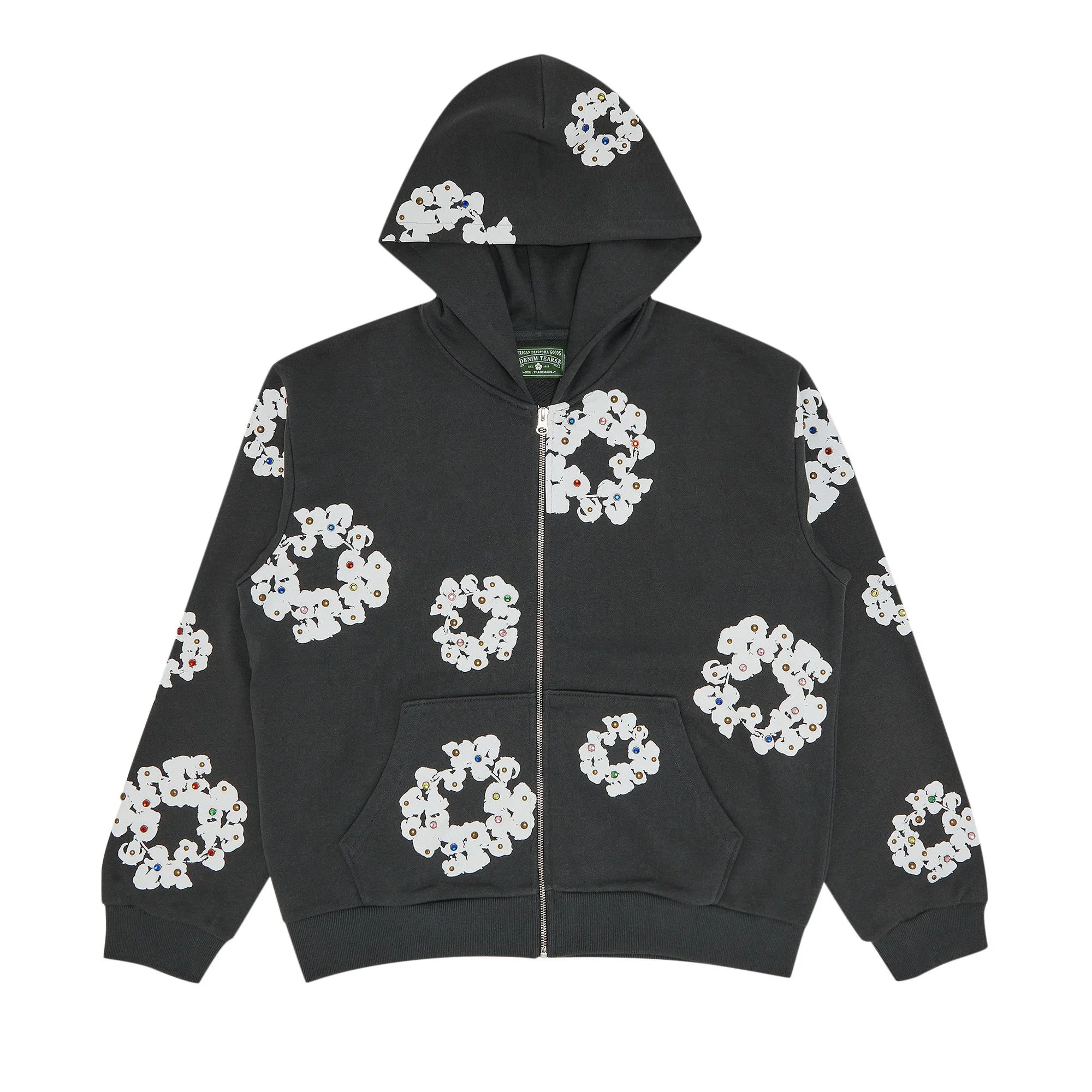 Denim Tears Rhinestone Wreath Zip Hoodie 'Vintage Black'