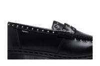 Launching as part of a collaborative three-piece collection, the Supreme x Dr. Martens Penton Studded Loafer 'Black' brings a rebellious edge to a classic footwear style. Covered in metal studs, the black leather upper features a traditional saddle strap and moc-toe stitching. Affixed to the lateral collar is a Supreme tag, while dual branding graces the footbed. The loafer sits atop Dr. Martens' grooved AirWair sole, secured with tonal welt stitching. UPPER MATERIAL Leather