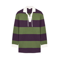 Oversized tie-detailed striped cotton-blend jersey polo shirt