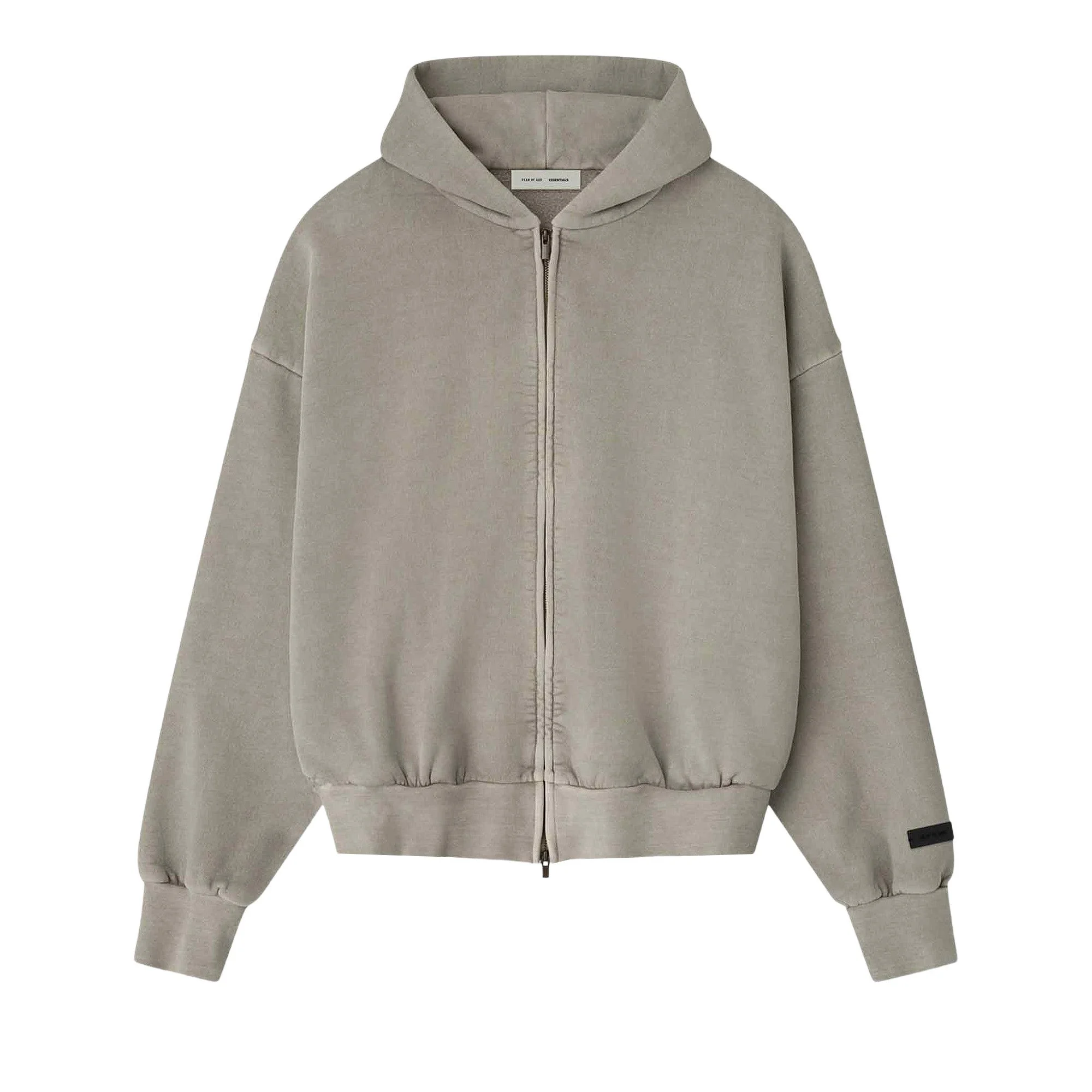 Fear of God Essentials Embroidered Classic Full Zip Hoodie 'Smoke Grey'