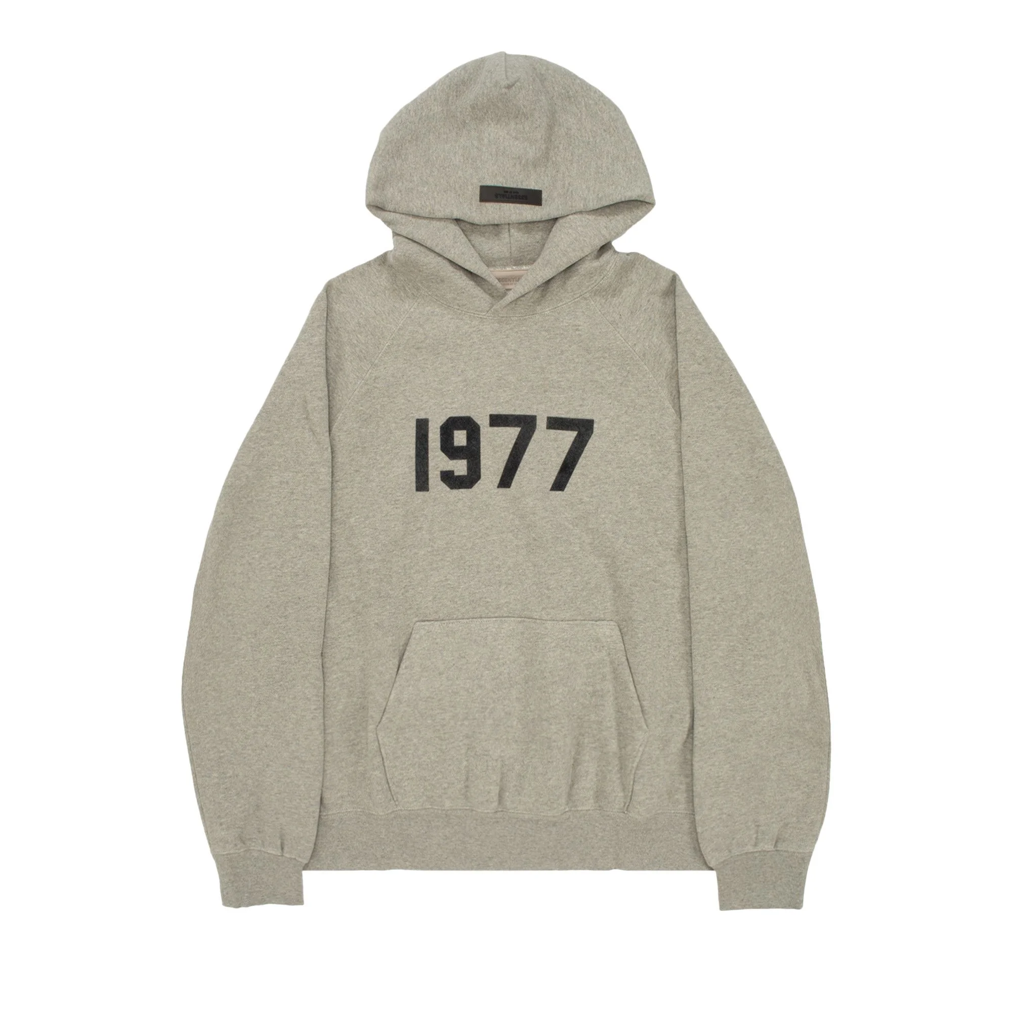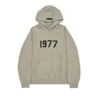 The Fear of God Essentials Hoodie 'Dark Oatmeal' is emblazoned with "1977" across the front, a nod to the birth year of the label's founder Jerry Lorenzo. From the SS22 collection, the piece is made from heavyweight cotton-blend fleece and cut for a relaxed fit.