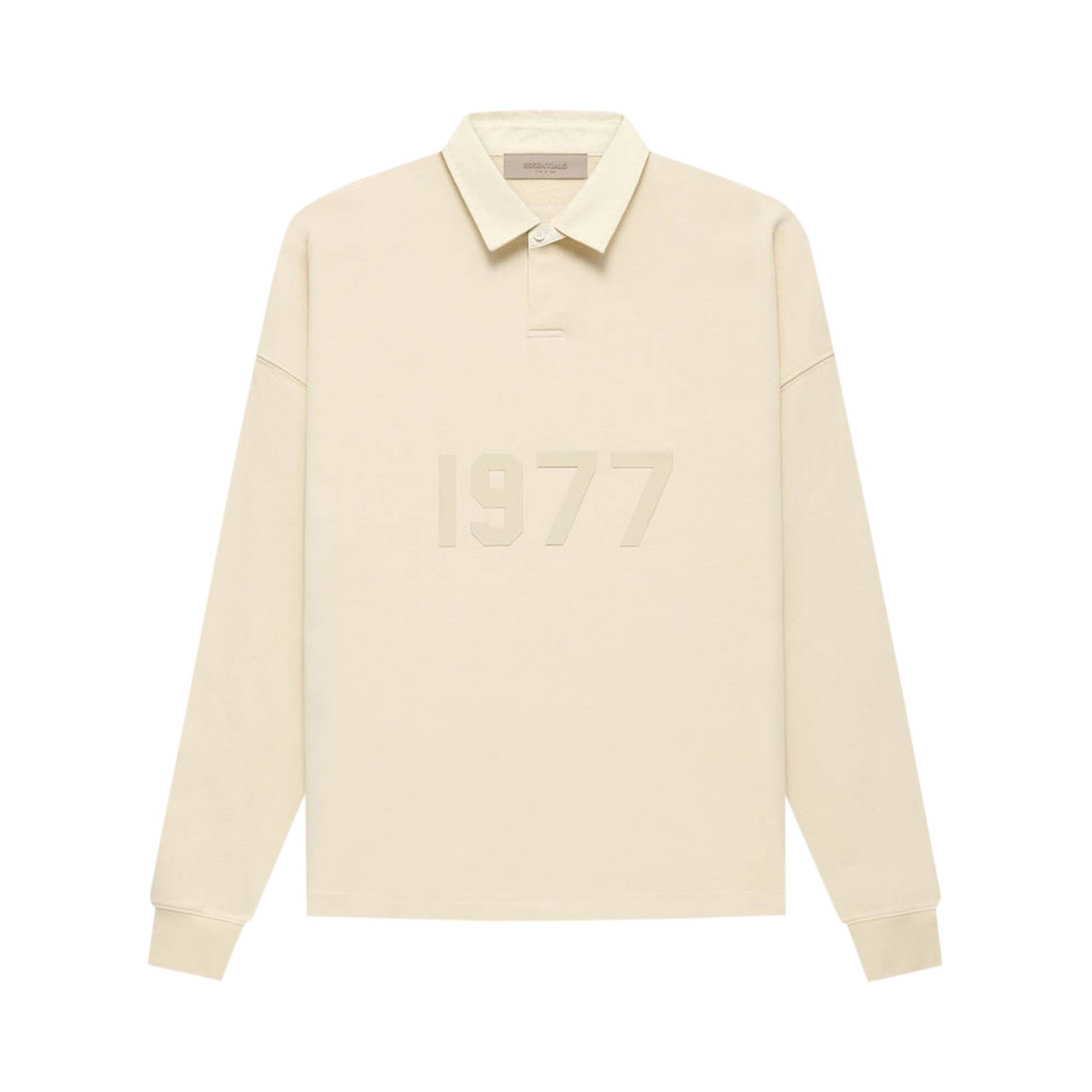 Fear of God Essentials' Henley Rugby shirt from FW22 is crafted from soft cotton French terry. Designed in a beige colorway, the long-sleeve top is detailed with "1977" on the front, referencing the birth year of Jerry Lorenzo.