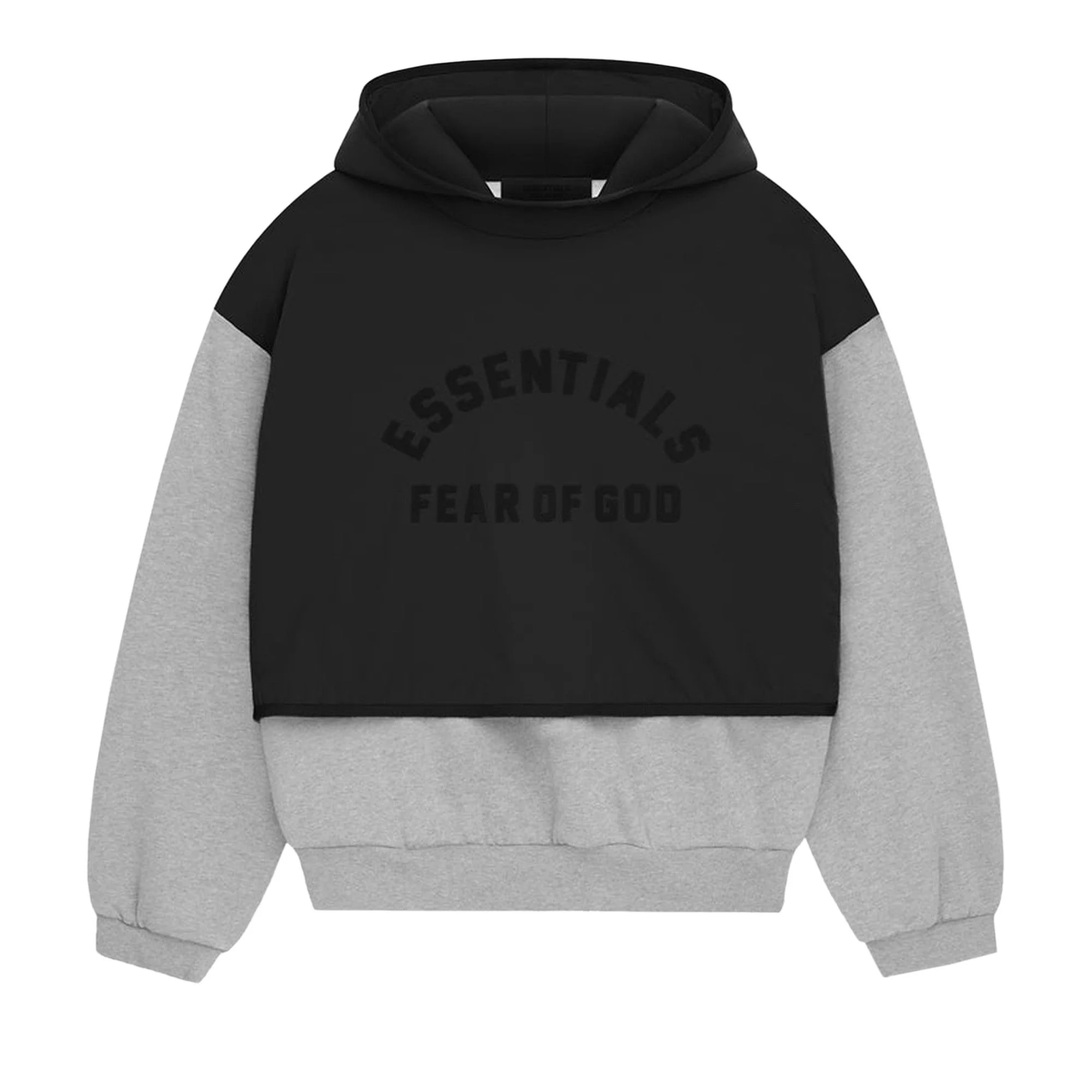 Fear of God Essentials Nylon Fleece Hooded Sweater 'Light Heather Grey/Jet Black'