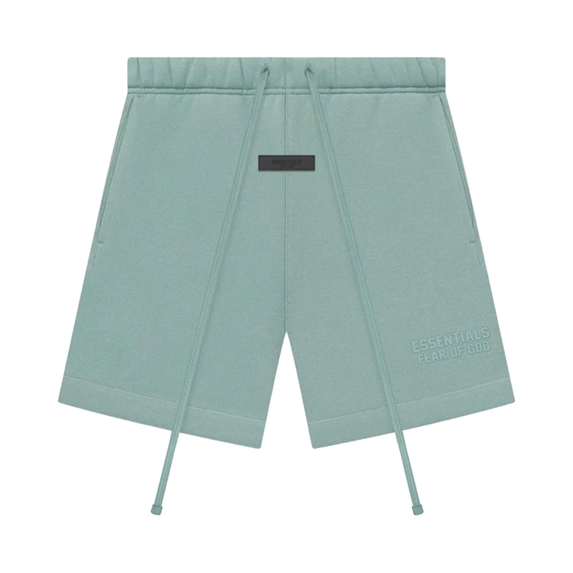 These Fear of God Essentials sweatshorts are made from fleece-back cotton-blend jersey in a pale green colorway. Designed for the SS23 season, the wide-leg shorts are detailed with a velvet-embossed logo on the lower leg as well as a rubbber branded patch on the waist. They're topped with the brand's signature elongated drawcord.