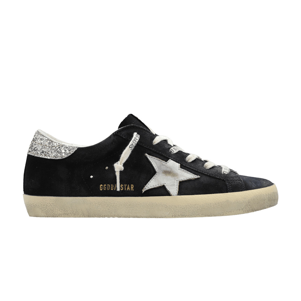 Super-Star distressed glittered leather-trimmed suede sneakers Navy