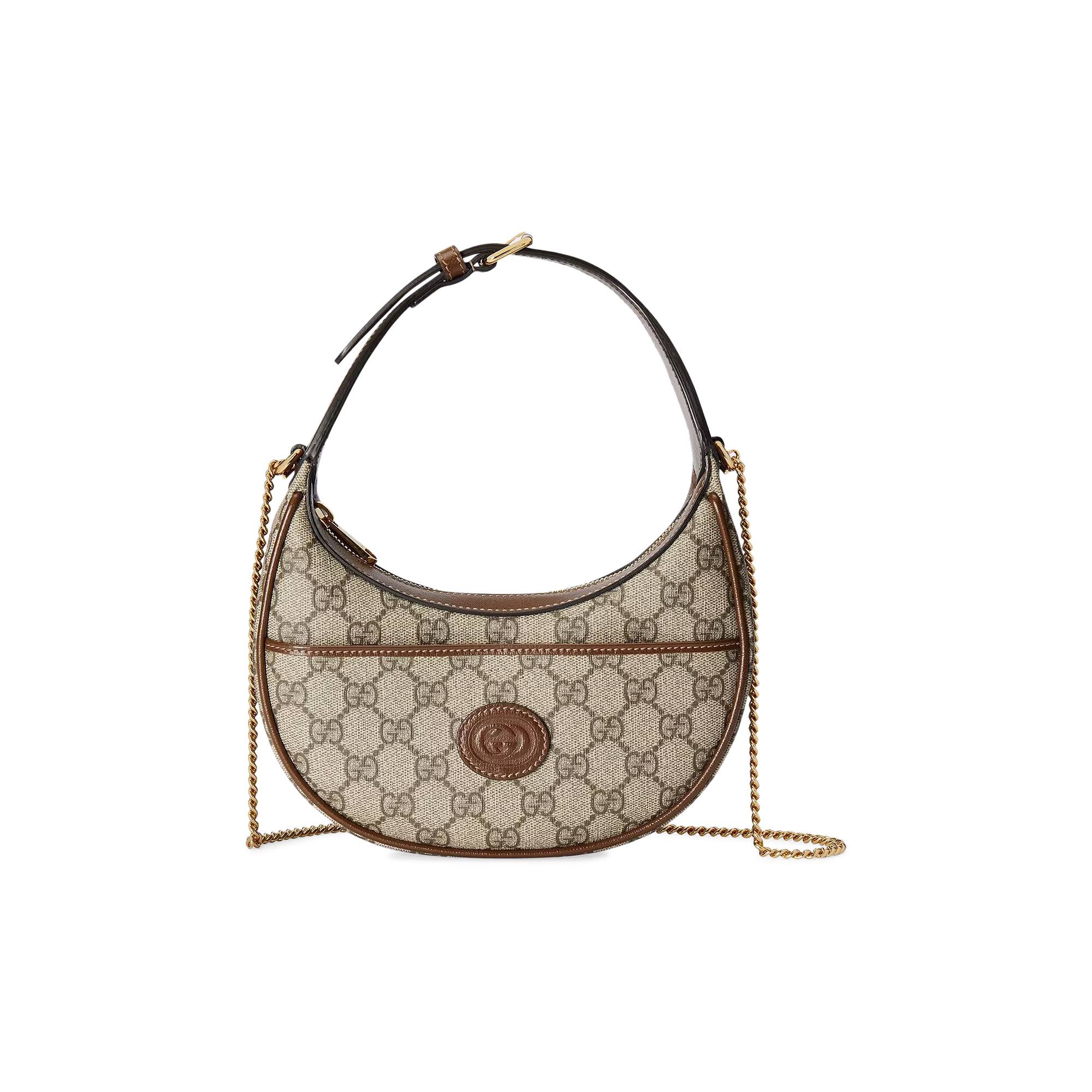 Gucci Half Moon Shaped Mini Bag With Interlocking G 'Beige/Ebony Supreme'
