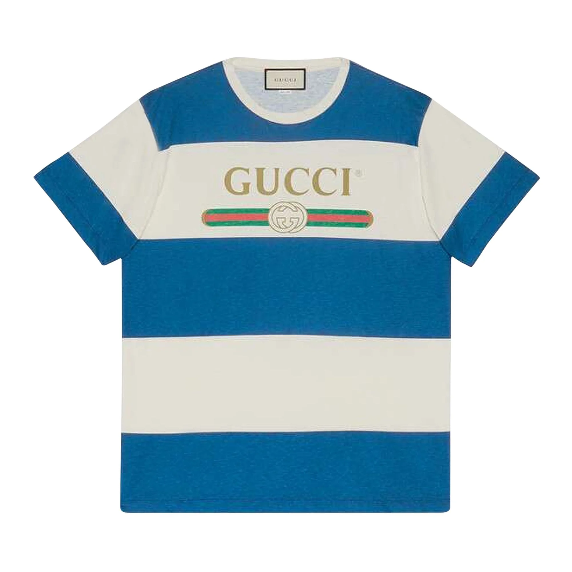 Gucci Logo Striped T-Shirt 'Natural/Blue'