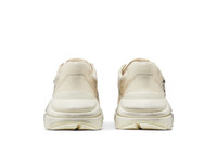 The Gucci Rhyton references the bold graphics, distressed materials and rebellious attitude of 80s glam rock. First seen at the Cruise 2019 show, this leather 'Mouth' version looks back on vintage style with an aged finish, printed lips motif, debossed logotype and a chunky heel. The expanded midsole and rubber outsole give way to artisanal Italian craftsmanship while playing to modern athleisure sensibilities. UPPER MATERIAL Leather
