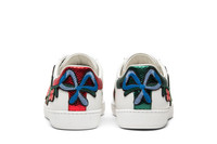 The Gucci Wmns Ace Embroidered sneaker is a modern interpretation of the house's first Tennis 84 shoe. This 'Floral' women's variation sports a luxurious leather upper livened up by multicolored embroidery crawling across the side with a bow over the metallic snakeskin heel. Archival Web stripes and a family crest within the sole's herringbone tread fuse the silhouette with a vintage element.