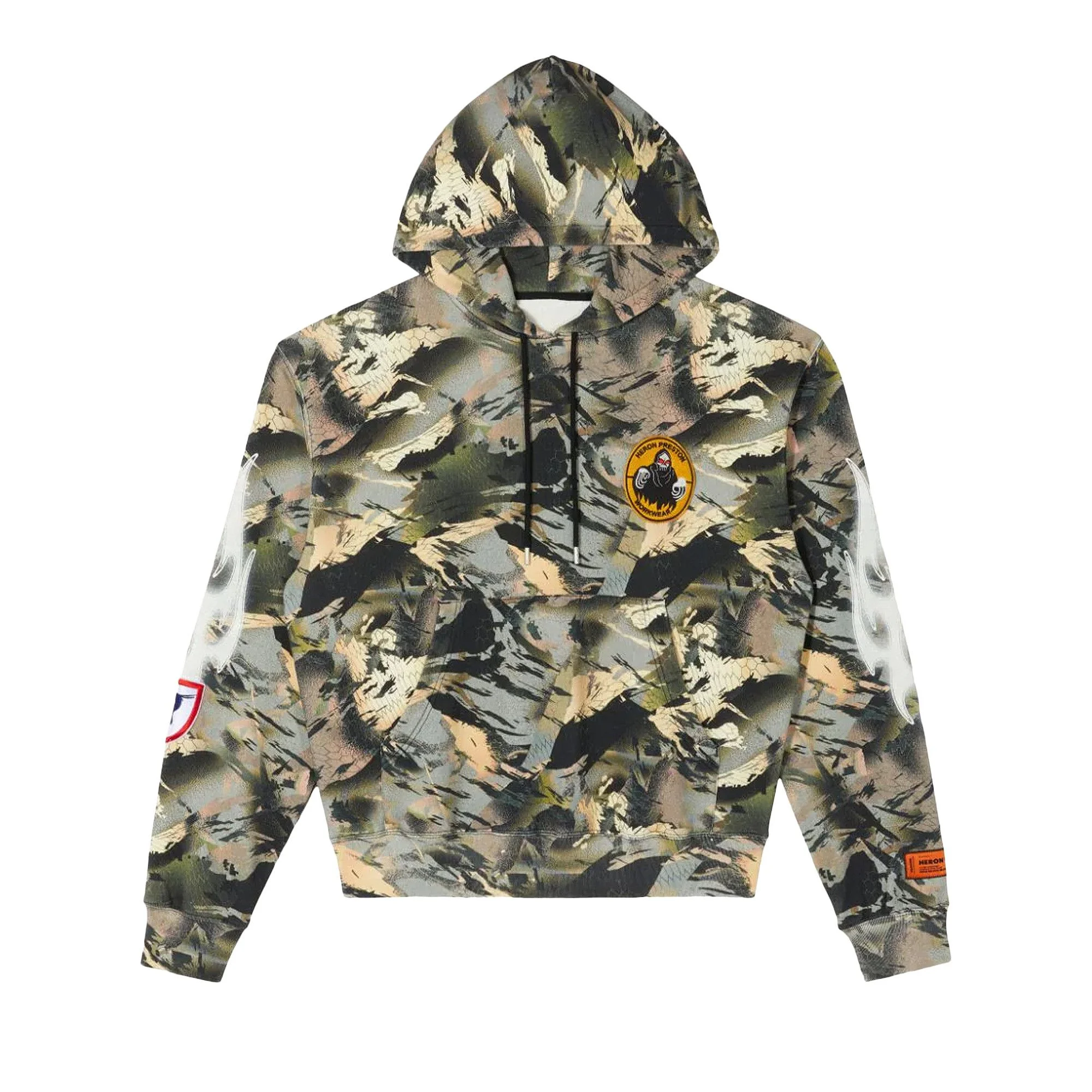 Heron Preston Hoodie Camo Flaming Sleeve 'Camou Green'