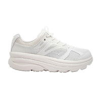 Emerged in September 2019, the Engineered Garments x Hoka One One capsule collection captures the understated fashion-forward character of the Bondi B sneaker. This all-white version combines mesh, leather and synthetic textile for the upper. Custom branding is shown on the midfoot panel and heel. Supported by segmented outsole rubber, the maximalist CMEVA midsole comes with Meta-Rocker technology and an Active Foot Frame for added stability.