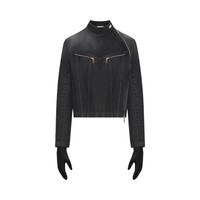 Black High Neck Zipped Gloves Denim Jacket