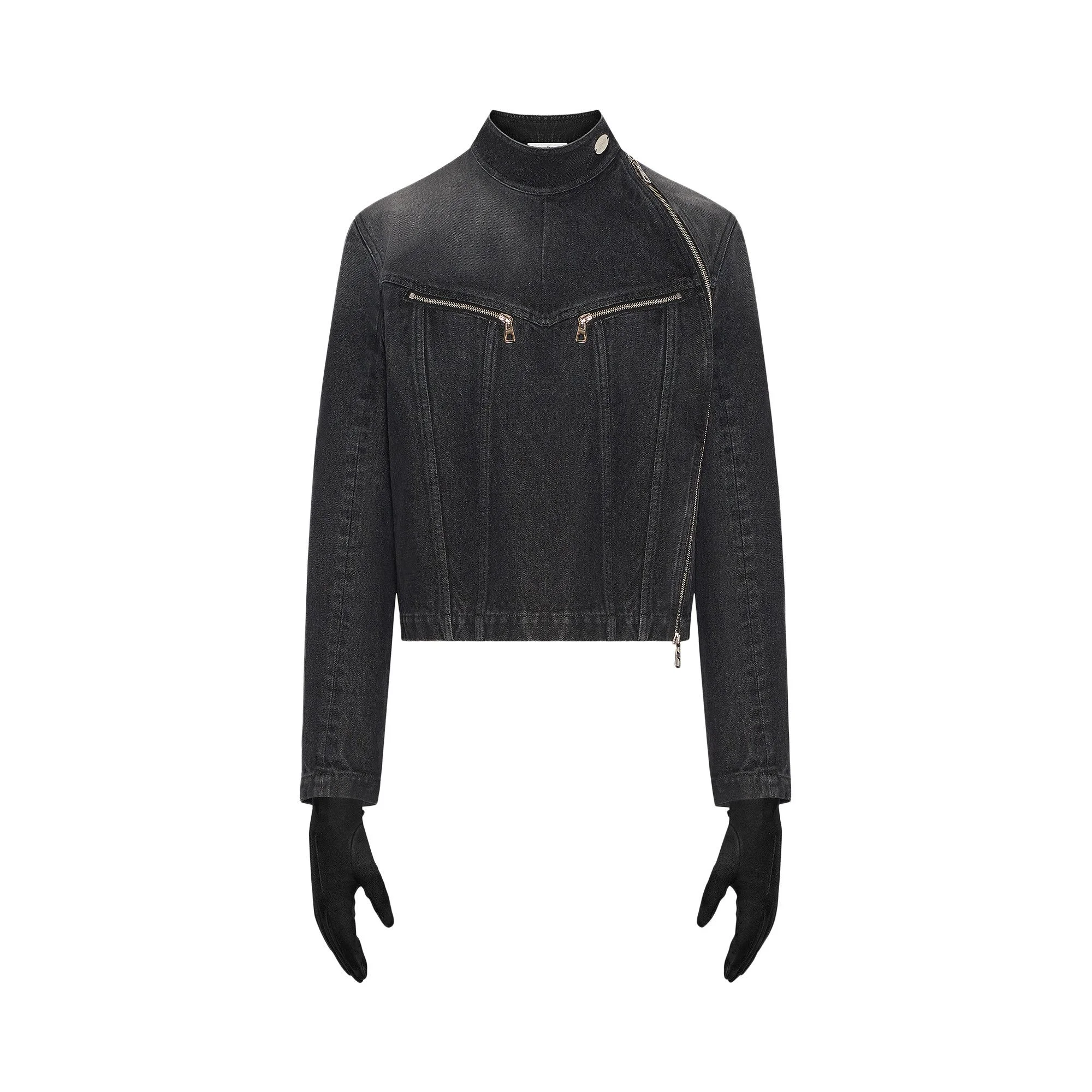 Jean Paul Gaultier Denim High Neck Zipped Jacket With Gloves 'Black'