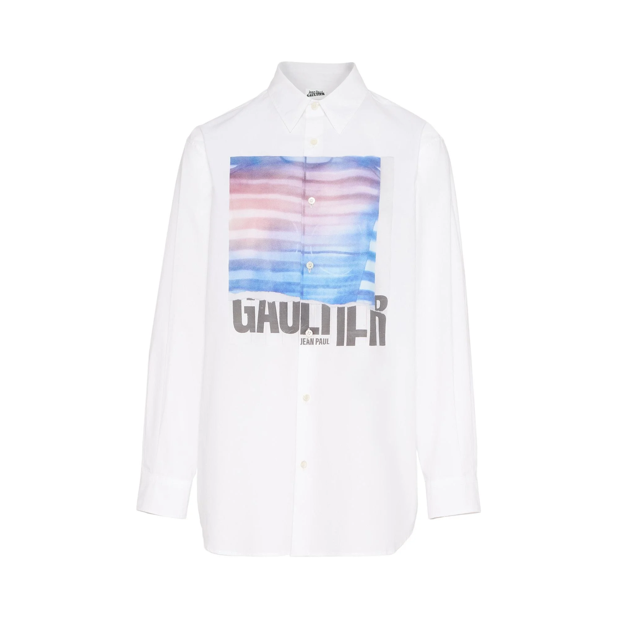 Jean Paul Gaultier Printed Shirt 'White/Light Blue/Peach'