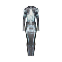 Jean Paul Gaultier Printed Squeletor Mesh Long Dress 'Black/Navy/Lightblue'