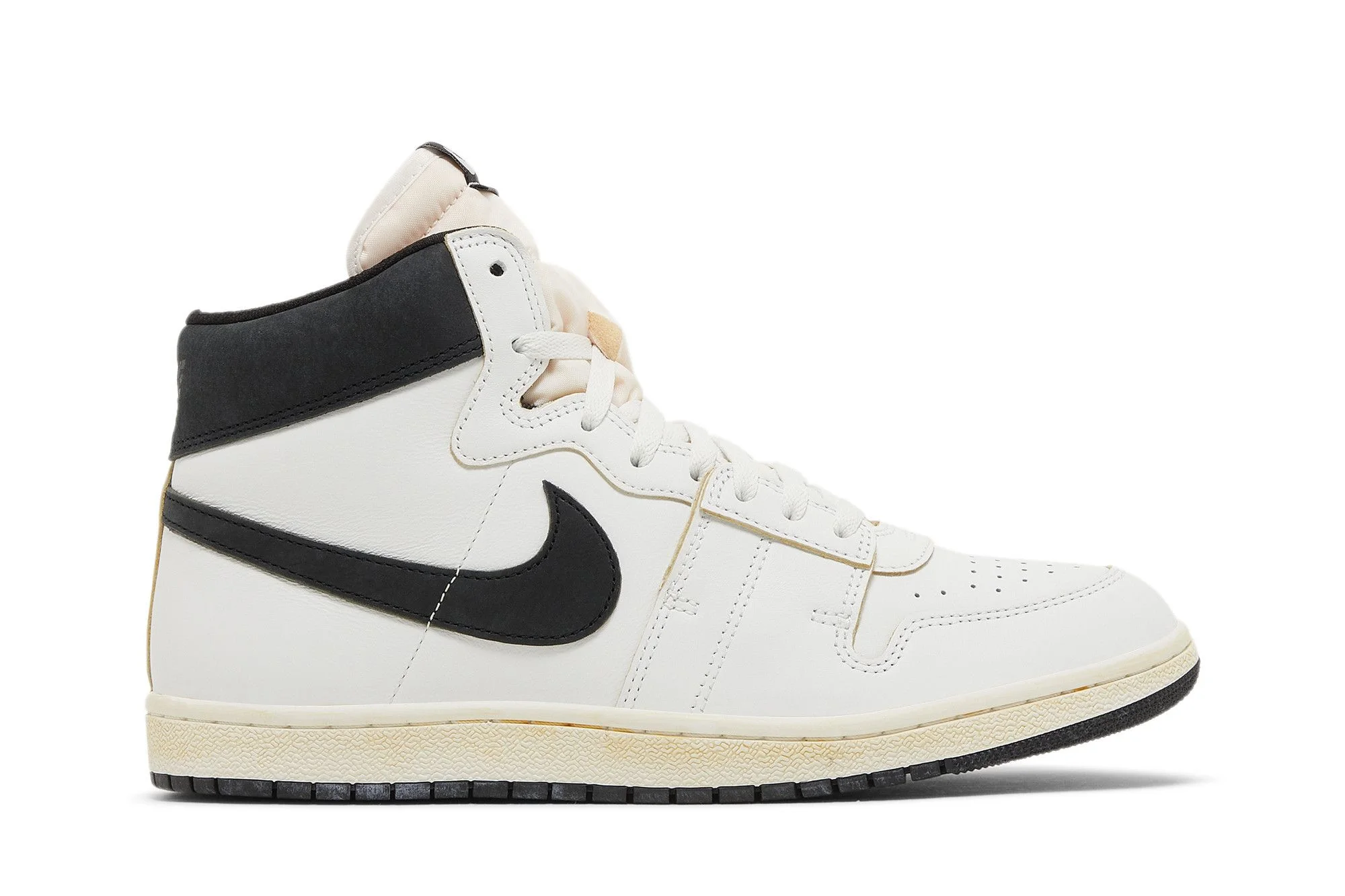 The A Ma Maniére x Jordan Air Ship PE SP ‘White Black’ delivers an essential two-tone colorway of the heritage hoops shoe. The Atlanta-based retailer dresses the high-top in a white leather upper, accented with contrasting hits of black on the signature Swoosh and padded collar. The latter is stamped with mismatched branding at the rear, highlighted by ‘Nike Air’ on the right shoe and A Ma Maniére’s ‘A’ logo on the left. A dual-branded woven tongue tag adorns the breathable nylon tongue. The sneaker rides on a durable rubber cupsole, featuring pre-yellowed sidewalls and an aged black rubber outsole. UPPER MATERIAL Leather
