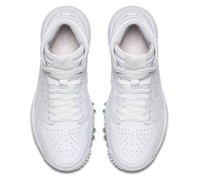 Inspired by Michael Jordan’s passion for golf, the Air Jordan 1 Golf 'White Metallic’ pairs an Air Jordan 1 upper with golf shoe tooling. This model’s fully waterproof white leather upper also features a metallic silver ‘Wings’ logo on the ankle and a perforated toe box. Underfoot, the Nike Free-inspired outsole is supported by soft spikes designed for fairways and greens. UPPER MATERIAL Leather