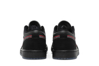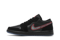 The Air Jordan 1 Low ‘Red Orbit’ showcases the sneaker’s signature Swoosh, outlined in red and treated to a unique cracked leather effect. The rest of the upper features a monochromatic black finish, executed on a leather base with smooth nubuck overlays. A red Jumpman icon adorns the lightly padded black nylon tongue. It all rides on a matching black foam midsole, reinforced underfoot by an icy translucent rubber outsole.