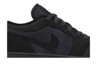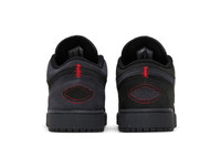 The Air Jordan 1 Low SE Craft GS 'Dark Smoke Red' delivers complementary shades of black and dark grey on the leather and suede upper, featuring a breathable nylon tongue with embroidered Jumpman branding. Contrast red stitching traces the embossed Wings logo that decorates the back heel. The low-top is mounted on a charcoal-hued rubber midsole with encapsulated Air-sole cushioning in the heel. UPPER MATERIAL Suede