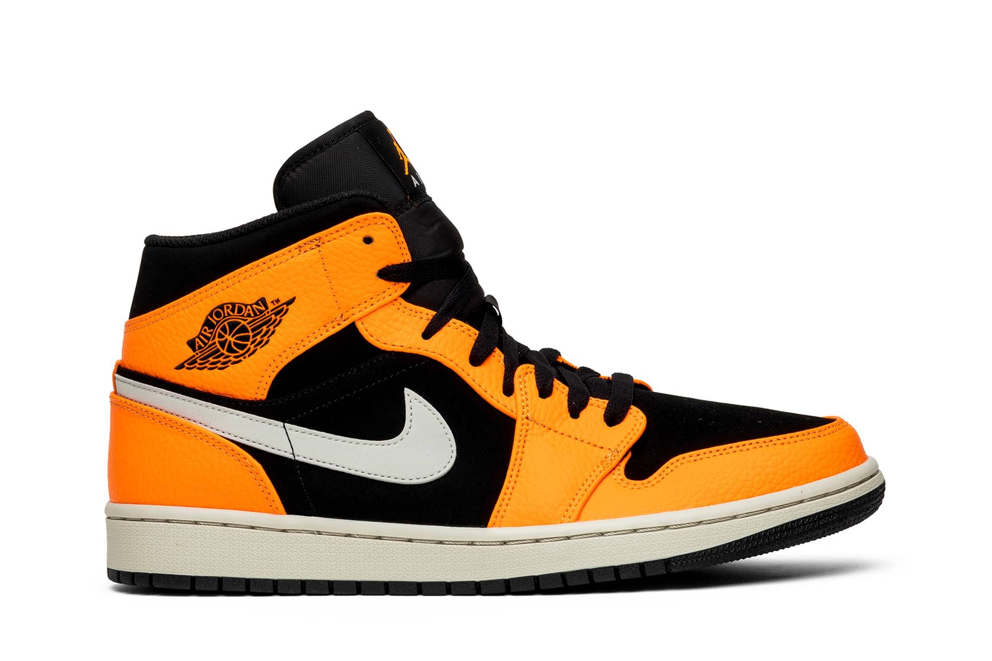 This instantly recognizable Orange Black iteration of the Air Jordan 1 Mid follows in the footsteps of the Shattered Blackboard version from 2015. The unique colorway consists mostly of orange leather overlays and black suede underlays accented by a white Swoosh and midsole. A black outsole and laces bring the look together. UPPER MATERIAL Leather