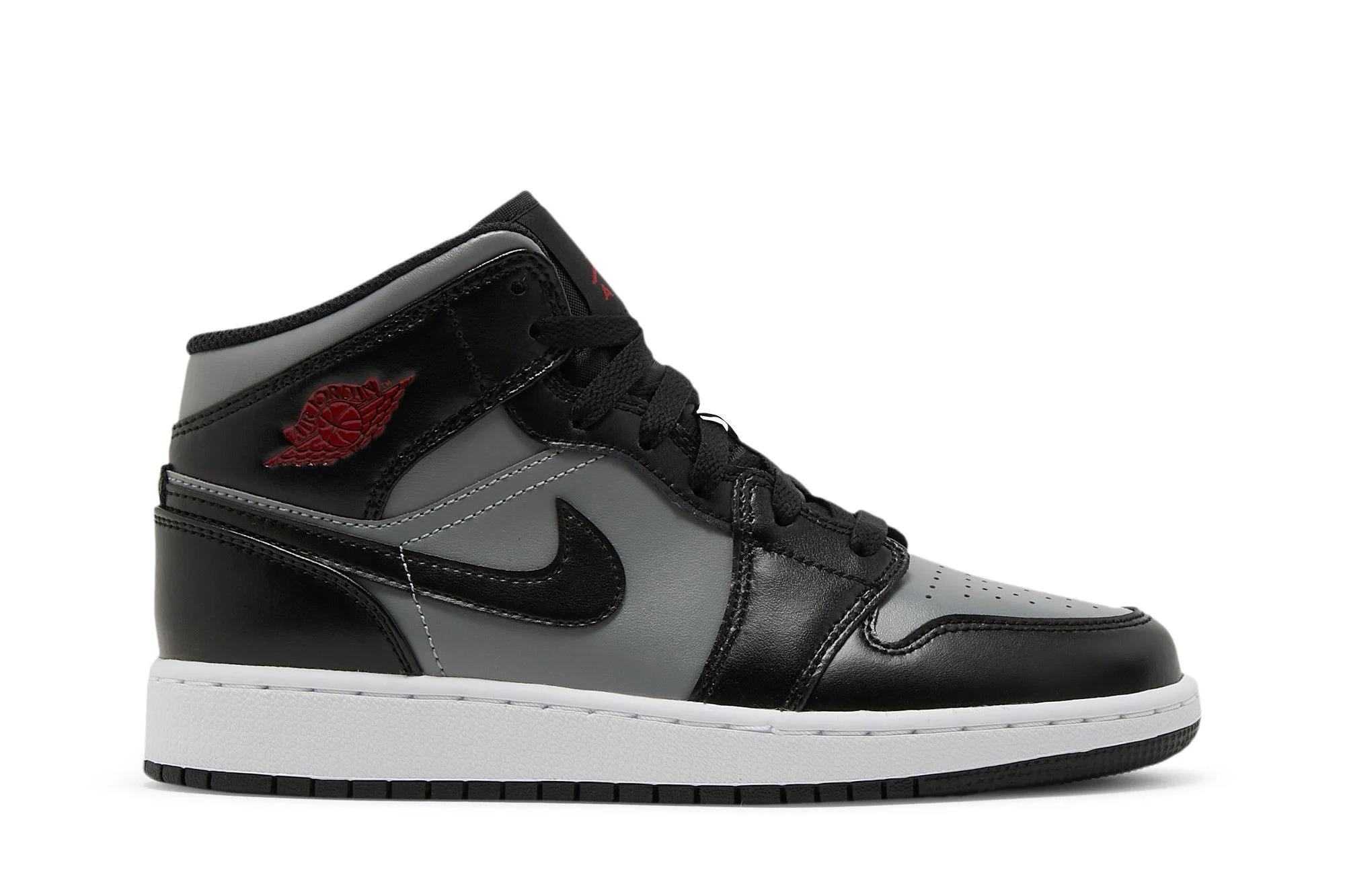 Made for big kids, the Air Jordan 1 Mid GS ‘Shadow’ features a neutral two-tone palette with contrasting color-popped accents. The all-leather upper pairs a Particle Grey base with black overlays along the forefoot and heel. The sneaker’s branding elements, including a Wings logo stamped on the lateral collar and a Jumpman icon atop the woven tongue tag, appear in a vibrant Gym Red hue. Lightweight cushioning is provided by a rubber cupsole with an encapsulated Air-sole unit nestled under the heel. UPPER MATERIAL Leather