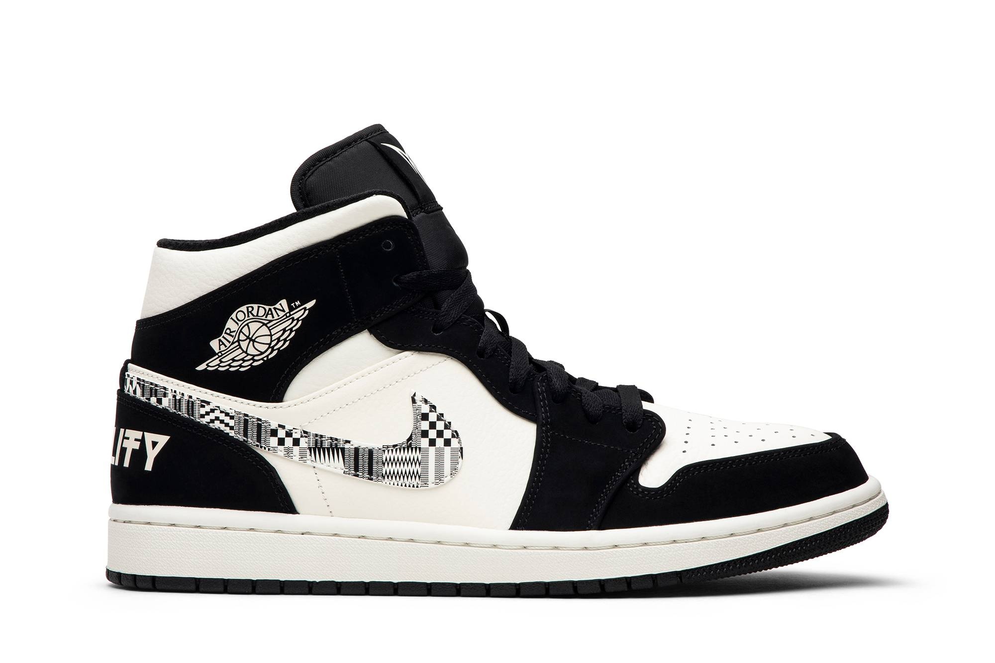 The Air Jordan 1 Mid Melo ‘Equality’ released in February 2019 as part of Nike’s annual Black History Month collection. The design makes use of a simple black and white color scheme, a recurring motif in Nike’s ‘Equality’ releases. In addition to a Swoosh that’s plastered with various complex patterns, the mid-top features ‘Equality’ printed on each heel and Carmelo Anthony’s personal logo on the tongue. UPPER MATERIAL Leather