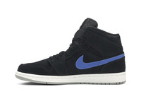 An on-court sensation since its debut in 1985, the Air Jordan 1 Mid takes inspiration from the original Air Jordan 1. This mid-top rendition adds luxe texture and a bold sensibility to the timeless design. It features an all-black suede and synthetic upper that’s punctuated with classic detailing along the quarter panel. The lateral side shows off a Universal Red Swoosh, while the medial side showcases a Hyper Royal Swoosh. An Air Jordan Wings and Jumpman logo round out this stylish design. UPPER MATERIAL Leather