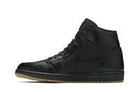 The Nike Air Jordan 1 Retro 'Gum Bottom' features a monochrome black premium leather upper with a gum sole. Released in December of 2014, the sneaker also features a gold 'Nike Air' logo on the tongue. UPPER MATERIAL Leather