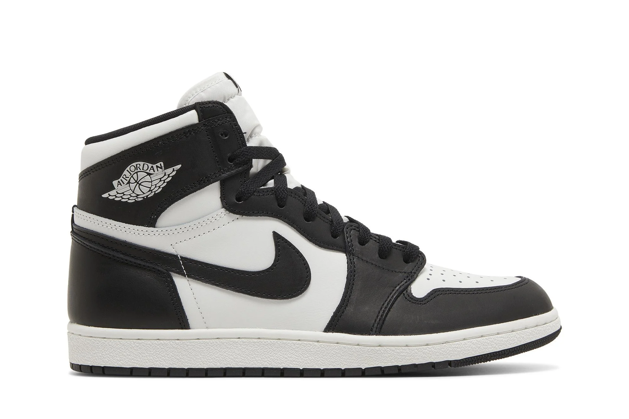 The Air Jordan 1 Retro High '85 OG 'Black White' also known as 'Panda,' sees an original colorway brought back by Jordan Brand trying to build it to the same specs as the 1985 OG. A simple two-tone leather upper mixes white and black across the shoe, with a black Swoosh complemented with a white Wings logo on the lateral profile. A Nike Air tongue tag arrives in black and white, matching the midsole and rubber outsole. UPPER MATERIAL Leather