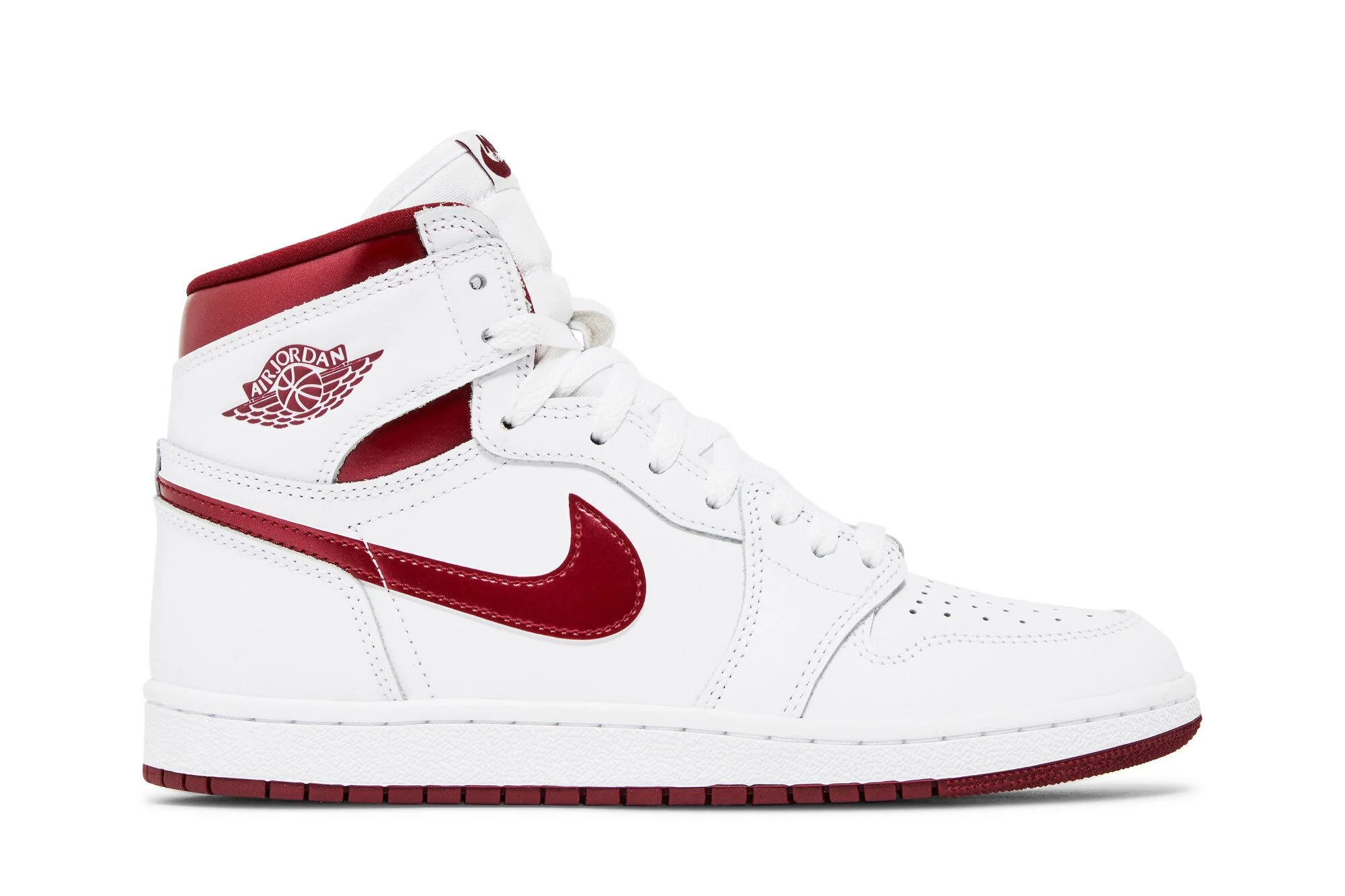 The Air Jordan 1 Retro High ‘85 OG ‘Metallic Burgundy’ brings back an OG colorway from 1986. Built with the higher-cut collar and wider toe box of the silhouette’s original release, the foundational sneaker makes use of a white leather upper with contrasting Team Red accents. The rich pops of color land on the padded collar and the shoe’s branding elements, including the Swoosh, Nike Air tongue tag, and the Wings logo stamped on the lateral ankle. Anchoring the high-top is a durable rubber cupsole, featuring white sidewalls and a burgundy outsole. UPPER MATERIAL Leather