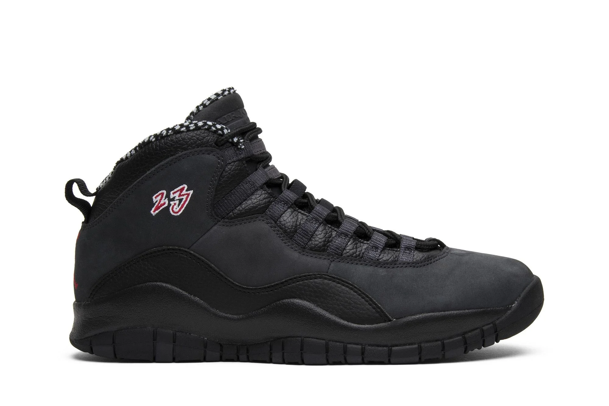 Part of the Air Jordan ‘Countdown Pack’ from 2008, the Jordan 10 released alongside the Jordan 13 in a Shadow colorway, which features a primarily charcoal and black offering that’s constructed with suede and leather paneling throughout. Contrasted with a red Jumpman and ‘23’ branding, the shoe also incorporates a diamond pattern on the sockliner, while the outsole is stamped with ten different bars that represent major milestones during Michael Jordan’s career.